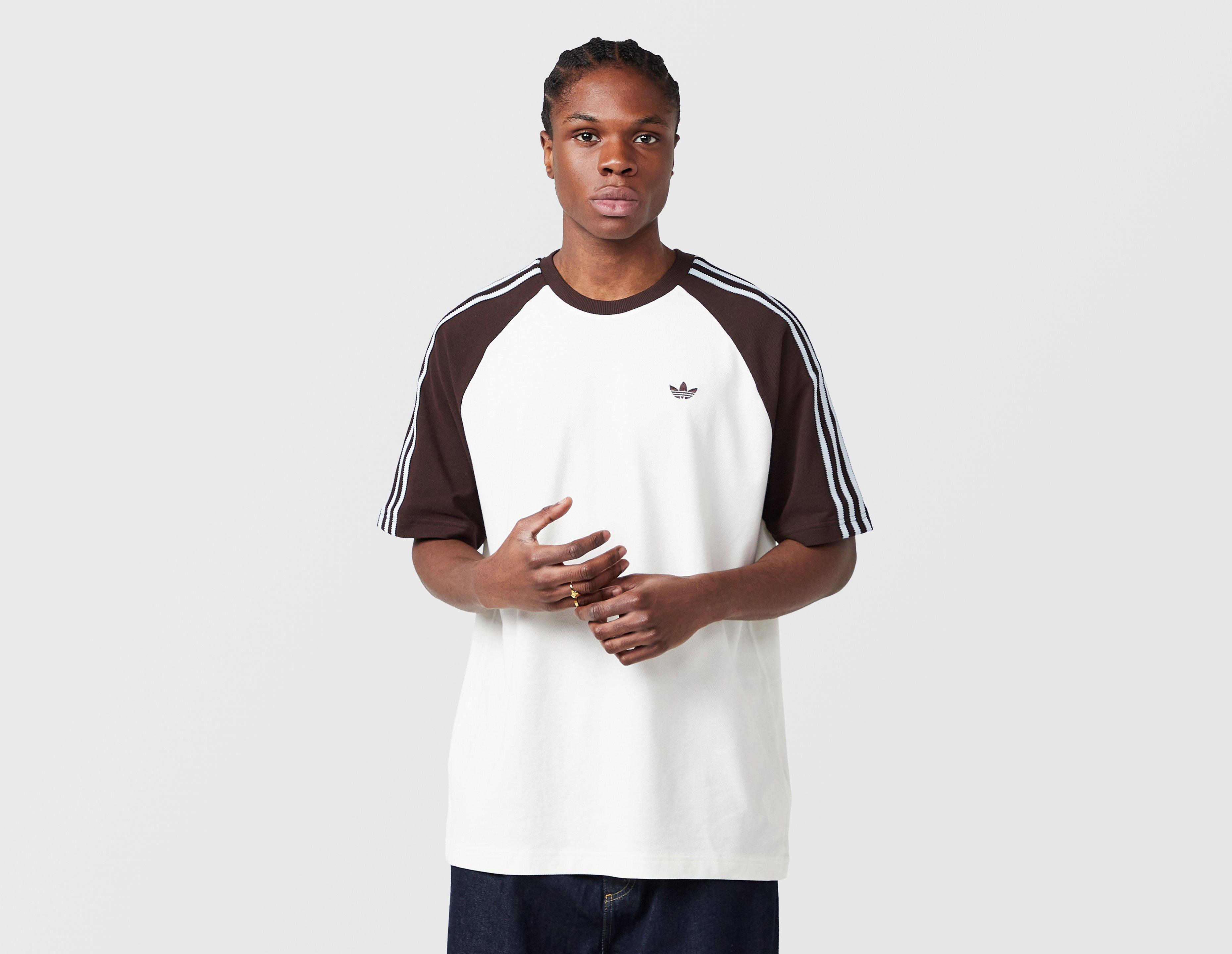 Una oda a los años 90 y 2000, la camiseta adidas Originals Britcore Ringer está confeccionada en un lujoso tejido piqué de algodón en color caqui piedra con un corte holgado y cuello acanalado con bordado del trébol en color café Aurora. | HZ3830